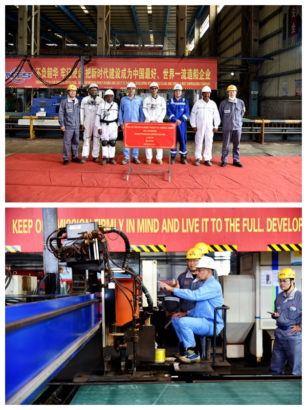 生產(chǎn)管理部、質(zhì)量管理部、營銷部等相關(guān)人員分別與新加坡船東Navig8現(xiàn)場經(jīng)理Kumar、副經(jīng)理Sunil等出席活動,見證船舶開工建造。
