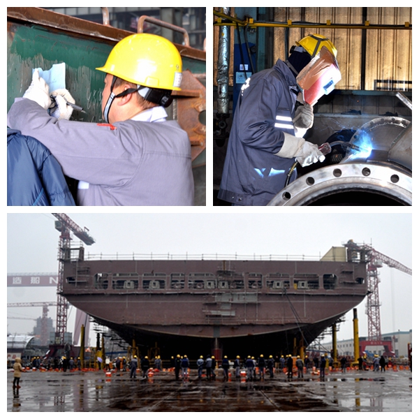 目前,企業(yè)有1艘13000箱集裝箱船、1艘50000噸化學(xué)品船在東海試航,預(yù)計(jì)將于近期完工交付;船舶舾裝碼頭上停靠著1艘210000噸雙燃料動(dòng)力散貨船、1艘7000箱集裝箱船,正在開展調(diào)試作業(yè)。三個(gè)船塢內(nèi)有7艘船舶正在有條不紊地進(jìn)行著船體合攏搭載,分別是2艘210000噸雙燃料動(dòng)力散貨船、2艘7000箱集裝箱船、1艘50000噸化學(xué)品船、1艘13000箱集裝箱船、1艘115000噸油船。