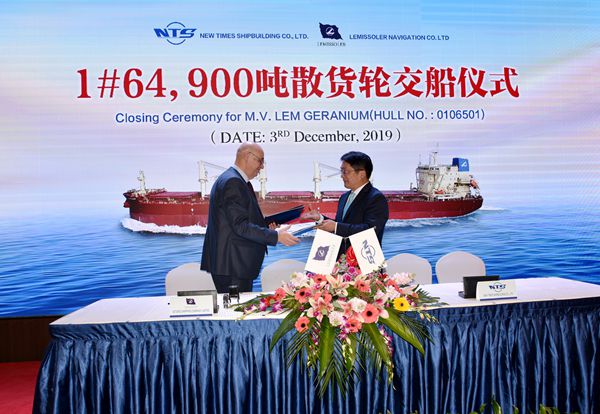12月3日上午,公司舉行隆重命名交船儀式,1#65000噸散貨船正式交付船東。