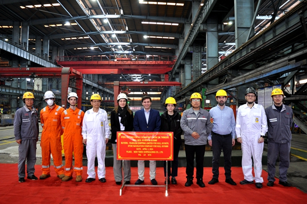 4月3日上午,公司在新區(qū)鋼加車間舉行船舶開工點(diǎn)火儀式,79#80#157000噸油船船體結(jié)構(gòu)件開始切割預(yù)制。常務(wù)副總經(jīng)理張玉永與希臘船東Polembros Shipping Limited代表出席活動。