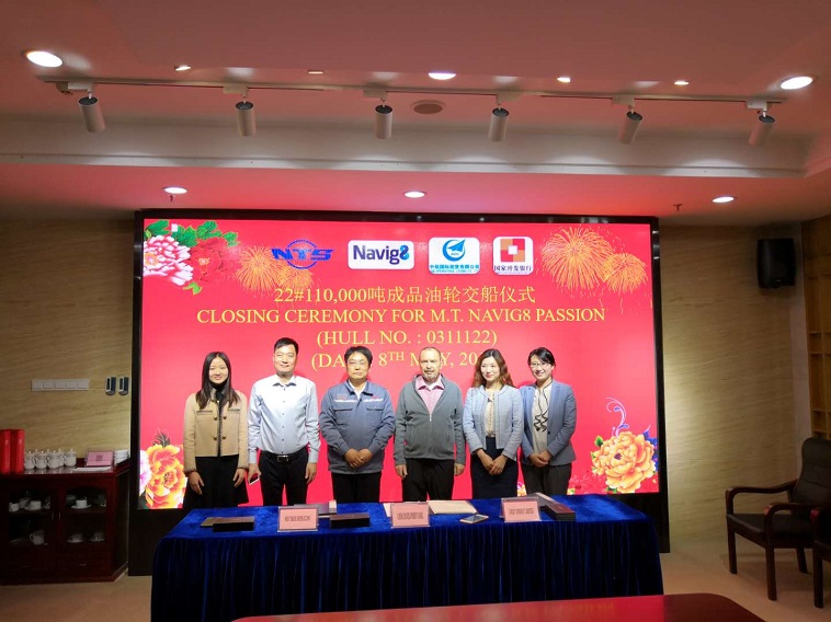 5月8日,公司舉行船舶簽字交付儀式,22#110000噸成品油船順利交付。