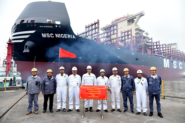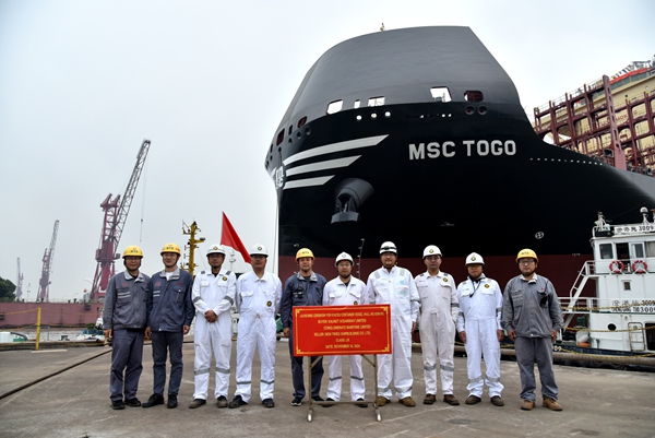 2#8#8100箱雙燃料動(dòng)力集裝箱船順利下水