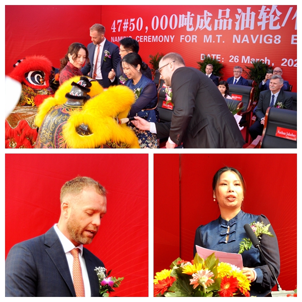 常務(wù)副總經(jīng)理張玉永致辭,他說,Navig8是我們非常重要的客戶,多年來在船舶建造領(lǐng)域彼此一直保持著良好的合作關(guān)系。從2016年開始Navig8的第一個項目起,公司已經(jīng)優(yōu)質(zhì)高效地向Navig8交付了21艘船舶,今天命名的是第22艘,也即將交付。而且,我們還有四艘Navig8的船舶正在建造。衷心感謝Navig8給予的信任和支持,相信這種密切的合作將在未來繼續(xù)下去。展望未來,我們真誠地希望今天命名的這艘美麗船舶表現(xiàn)良好,愿這艘滿載著我們友誼和夢想的船舶,永遠(yuǎn)順風(fēng)順?biāo)?/span>