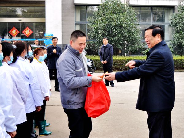 袁凱飛等公司領(lǐng)導(dǎo)與節(jié)日期間加班的員工一一握手,并給大家送上慰問(wèn)品!靶履旰茫蠹倚量嗔恕,在互相的問(wèn)好聲中,領(lǐng)導(dǎo)們?cè)敿?xì)了解了大家加班期間的工作情況,叮囑大家一定要堅(jiān)守好工作崗位,將各項(xiàng)工作切實(shí)做好、做到位。領(lǐng)導(dǎo)的親切問(wèn)候,讓現(xiàn)場(chǎng)員工們充分感受到了企業(yè)的深切關(guān)懷,大家一致表示:請(qǐng)公司領(lǐng)導(dǎo)放心,為了全體員工能夠安安心心度過(guò)春節(jié)長(zhǎng)假,過(guò)好歡樂(lè)祥和的農(nóng)歷新年,我們一定堅(jiān)決克服困難,堅(jiān)守本職崗位,盡心履行職責(zé)。